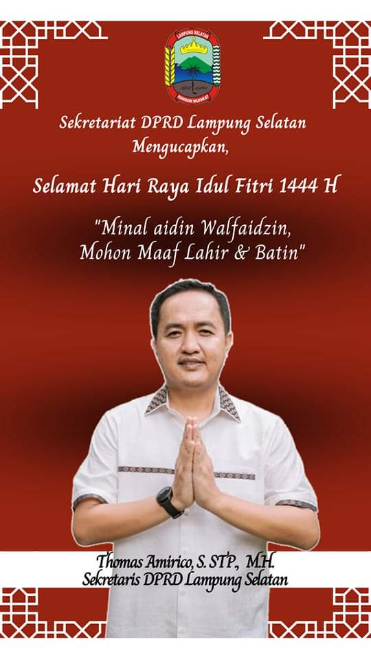 Pimpinan, Anggota DPRD Lampung Selatan & Jajaran Sekretariat Dprd Lamsel Mengucapkan, “Selamat Hari Raya Idul Fitri 1444 H, Minal Aidin Walfaidzin, Mohon Maaf Lahir & Batin..