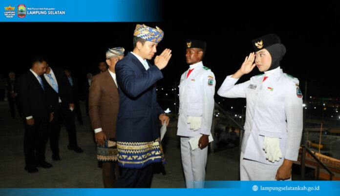 LAMSEL, Bakauheni – Bupati Lampung Selatan, Radityo Egi Pratama, secara resmi melepas Pasukan Pengibar Bendera Pusaka (Paskibraka) Kabupaten Lampung Selatan Tahun 2025. Pelepasan dilakukan usai upacara penurunan bendera di Lapangan Menara Siger, Bakauheni, Minggu malam (17/8/2025).