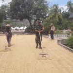 Perkuat Ketahanan Pangan, Babinsa Koramil 0421-07/Sdm Bantu Petani Jemur Padi