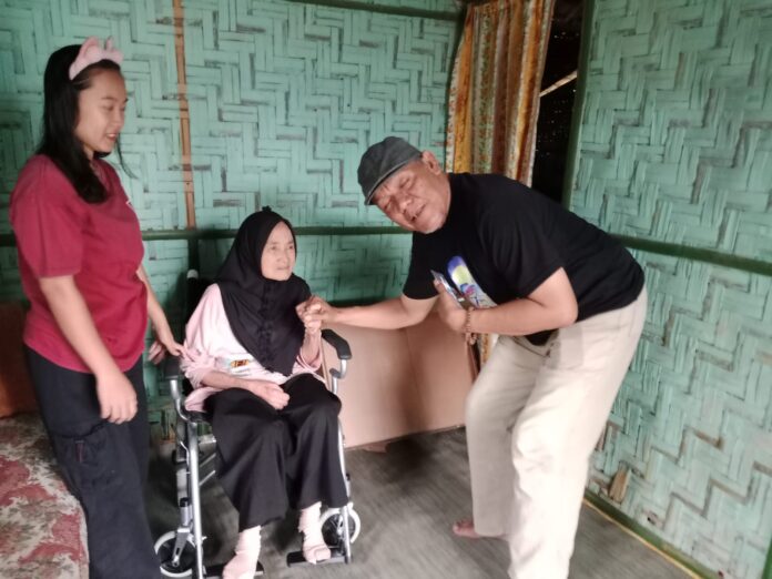 KALIANDA-Mungkin saja para pembaca lebih mengetahui, bahkan pernah merasakan jika diri kita tidak pernah sekali pun tersenyum atau bahkan tertawa selama setahun lebih. Atau cobalah rasakan apa yang akan terjadi kepada diri kita dan lingkungan kita jika satu Minggu saja kita tak pernah tersenyum atau tertawa bahagia dalam hidup kita. Nah, kejaipan inilah yang terjadi ketika tim 11 media Lamsel menyerahkan satu buah kursi roda untuk atas nama Sum Fatimah (60) warga Dusun Kayu Tabu Desa Klawi Bakauheni Lampung Selatan. Nenek yang sudah lama sekali tidak pernah tersenyum atau tertawa sedikit pun, tiba tiba terjadi keajaiban saat menerima satu buah kursi roda dari tim 11 media Lamsel. “Ya Allah, liatlah nenek sekarang bisa tersenyum,” ucap cucunya yang telah memiliki satu orang anak ketika mendampingi neneknya menerima satu buah kursi roda, pada Jumat sore (10-4-2025).