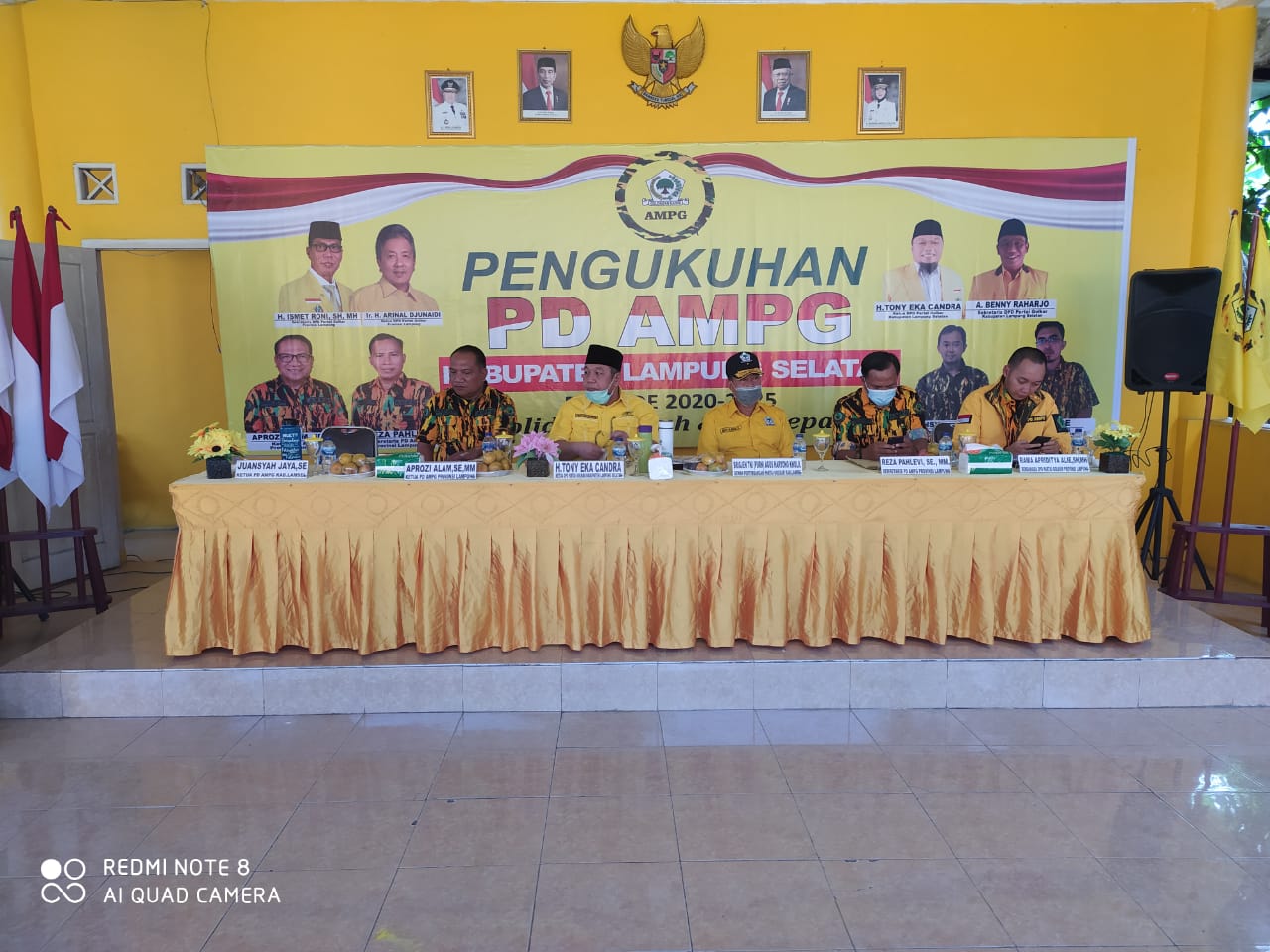 Pengukuhan pengurus AMPG Lamsel dilakukan langsung oleh Ketua AMPG Provingsi Lampung dengan menyerahkan bendera petaka. Usai melantik, Ketua AMPG Provingsi Lampung, Aprozi Alam, meminta seluruh pengurus dapat bekerja cepat dengan membentuk pengurus AMPG di tingkat kecamatan. “Saya berikan waktu dalam sebulan kedepan, AMPG disetiap kecamatan sudah terbentuk,” katanya, saat memberikan arahannya kesemua pengurus yang baru dilantiknya.