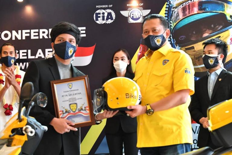 JAKARTA- Ketua MPR RI sekaligus Ketua Umum Ikatan Motor Indonesia (IMI) Bambang Soesatyo mengukuhkan youtuber, influencer, sekaligus tokoh muda inspiratif yang juga Wakil Ketua Komunikasi dan Media Sosial IMI Pusat, Atta Halilintar, sebagai Presiden Komunitas Motor Listrik Indonesia. Sekaligus menghibahkan motor listrik Bike Smart Elektrik (BS Elektrik) menjadi salah satu kendaraan operasional Atta Halilintar.