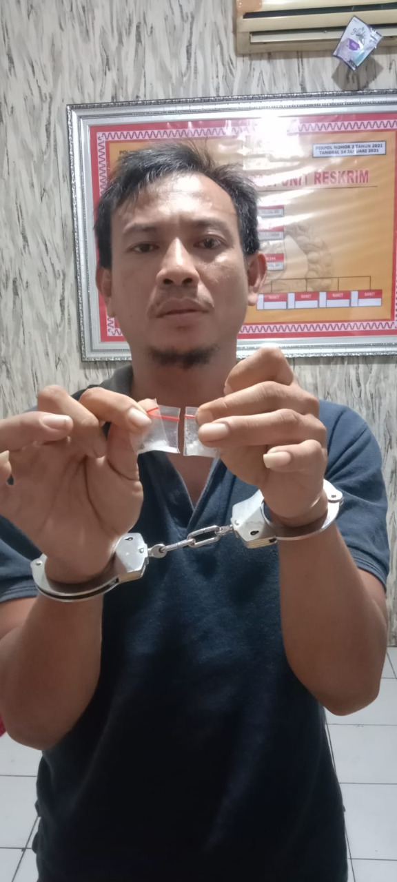 Pelaku ditangkap berinisial GH (37) dengan barang bukti satu buah plastik klip bening ukuran besar , delapan buah plastik klip bening ukuran kecil kosong dan tiga buah plastik klip bening ukuran kecil yang berisikan kristal berwarna putih dan satu unit sepeda motor merk Honda Beat warna putih nomor polisi BE 4790 AX.