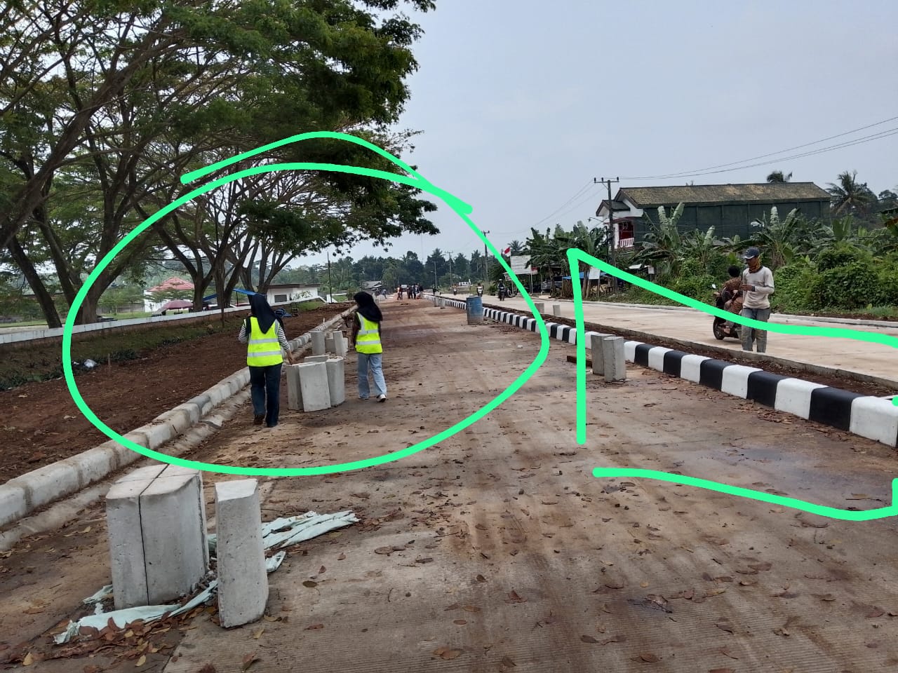 Tampak jelas saat ini, kontraktor jalan simpang tugu Raden Intan senilai 18,5 M itu sedang menyelesaikan bangunan Siring kanan dan kiri jalan. Bukan hanya itu, beberapa pekerja juga sedang mengecet jalur tengah pembatas jalan dua jalur.