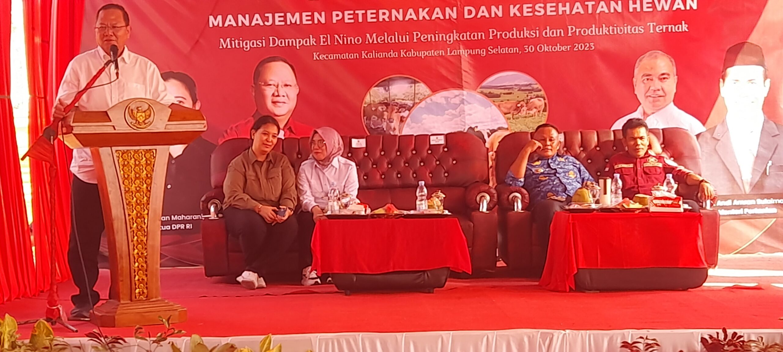 Dalam Bimtek itu, Ketua DPD PDIP Prov. Lampung Sudin SE memberikan arahan agar para peternak mampu mensiasati usaha ternaknya agar cukup mendapatkan pangan yang baik di masa el mino atau kemarau ini. “Saya dapat merasakan kesulitan yang dialami para peternak di Lamsel ini, khususnya di desa ini dimasa el nino atau musim kemarau ini. Karna itu, kita sudah siapkan bantuan untuk dibawa pulang ke para peternak, berupa paket sembako, beras, dan bibit alpukat. Semoga bantuan yang sedikit ini bisa ringankan peternak di desa ini,” ucap Sudin, seraya mengingatkan ke para peternak, untuk tidak segan segan mengusulkan program peningkatan produksi ternaknya ke bupati. “Jika perlu, usulan dan aspirasi yang disampaikan ini akan kita upayakan perjuangkan di tingkat pusat,” kata Sudin, saat mengakhiri sambutannya. (asof)
