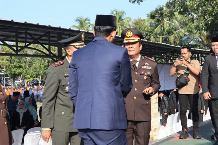 Lampung Selatan — Kepala Badan Narkotika Nasional Kabupaten (BNNK) Lampung Selatan AKBP Rahmad Hidayat hadiri upacara peringatan Hari Kesaktian Pancasila 2025. Menyampaikan pesan moral dan bertujuan untuk mengenang jasa para pahlawan Revolusi dan memperkokoh komitmen seluruh personel dalam mengamalkan nilai-nilai Pancasila, khususnya dalam upaya Pencegahan dan Pemberantasan Penyalahgunaan dan Peredaran Gelap Narkotika (P4GN). Acara berlangsung di halaman kantor Pemda Kabupaten Lampung Selatan. Rabu, 01/10/2025.