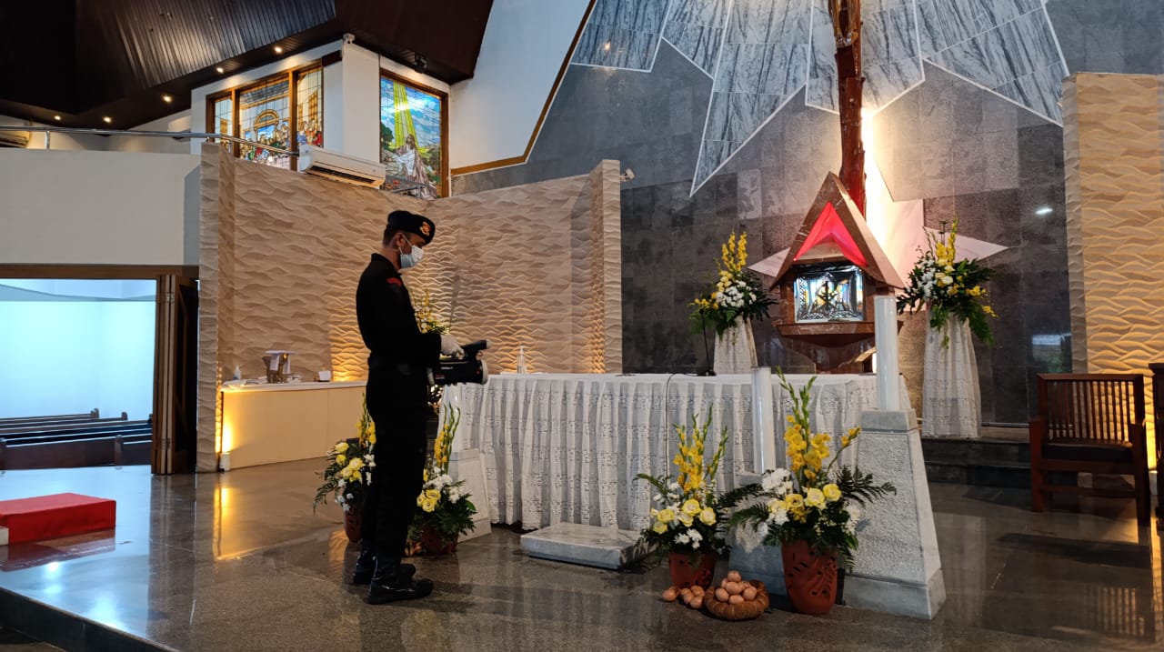 “Sterilisasi dilakukan sebagai langkah preventif untuk memastikan gereja-gereja dalam kondisi aman sebelum digunakan untuk ibadah umat,” kata Kombes Yuni.