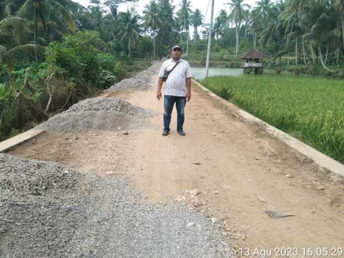 “Jalan ini sebagian ada yang sudah di underlagh, kalau yang ini (sambil menunjuk jalan) belum di underlagh, dari dulu masih tanah biasa mas,”jelasnya.