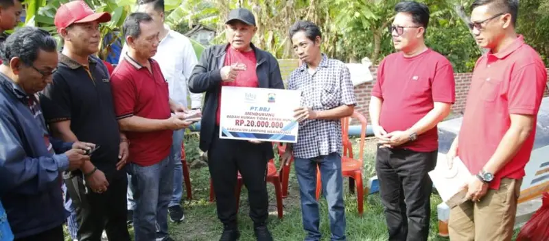 Kalianda – Suasana haru mengiringi pemberian bantuan dana bedah rumah oleh Pemerintah Kabupaten (Pemkab) Lampung Selatan yang berkolaborasi dengan program Corporate Social Responsibility (CSR) PT Bandar Bakau Jaya (BBJ) Bakauheni, pada Minggu (19/11/2023).