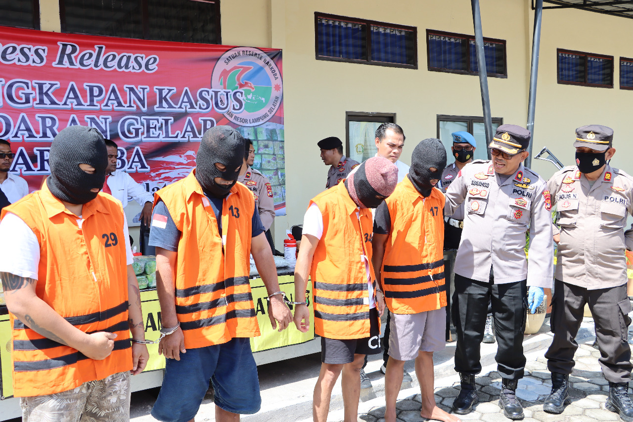 Wakapolres Lampung Selatan, Kompol Sukamso, S.Pd mengatakan, pertama kali digagalkan peredaran 19 Kg ganja dan 400 gram sabu di depan salah satu rumah makan di Jalan Lintas Sumatera, Bakauheni, Lampung Selatan, Jumat 19 Agustus 2022. Dari penangkapan barang bukti narkoba tersebut di bekuk dua orang pelaku kurir dan penerima barang.