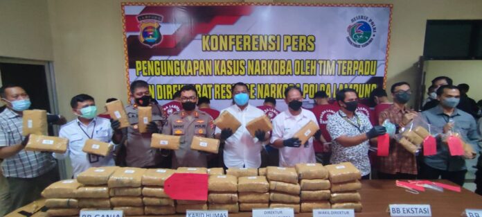 Ditres NARKOBA Polda Lampung gagalkan penyelundupan 3kg sabu,1.300 pil ekstasi, 69kg Ganja