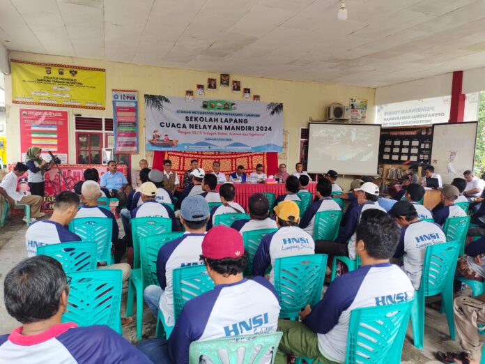 Sedangkan ibu Habsarina mewakili Direktur PT.lampung Energi berjaya Lampung menjelaskan pada kegiatan ini merupakan kalaborasi antara DPD HNSI Lampung dan BMKG Maritim Panjang. “Semoga kegiatan SLCN Sekolah lapang Cuaca Nelayan Mandiri 2024 ini, merupakan kegiatan informasi cuaca untuk nelayan agar saat mencari ikan lebih aman, hasil maksimal, dan selamat. (asof)