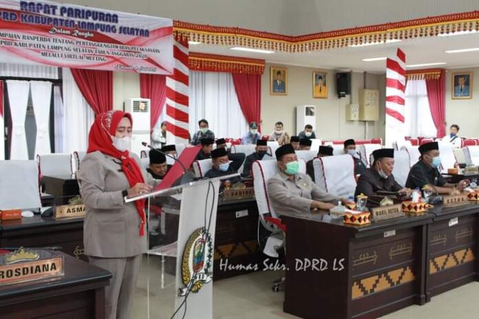 KALIANDA–DPRD Kab. Lamsel kembali melaksanakan kegiatan rapat paripurna di ruang sidang komplek perkantoran DPRD Kab. Lamsel (09/06/21), yakni rapat paripurna dalam rangka penyampaian ranperda pertanggungjawaban pelaksanaan APBD Kab. Lamsel tahun anggaran 2020.