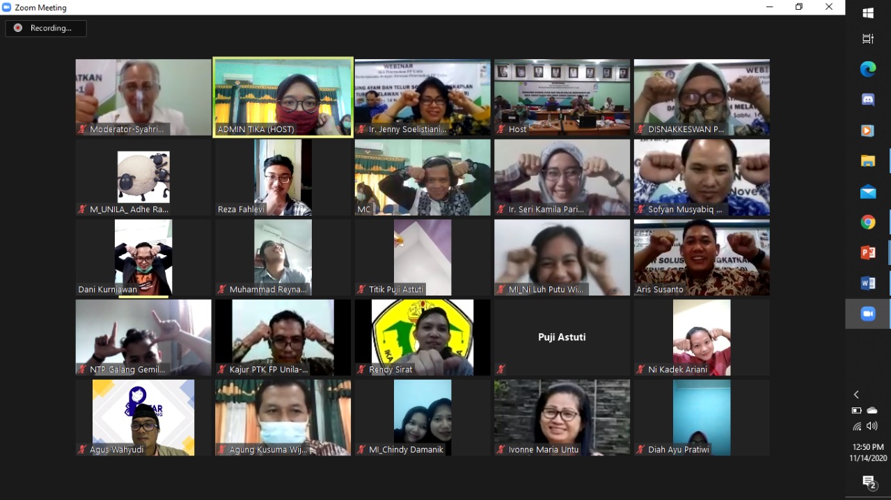 Bandar Lampung – Ikatan Keluarga Alumni (IKA) Jurusan Peternakan Fakultas Pertanian Universitas Lampung mengelar webinar dengan tema Konsumsi Daging Ayam dan Telur Solusi Meningkatkan Daya Tahan Tubuh Melawan Virus Corona (Covid-19). Sabtu, (14/11).