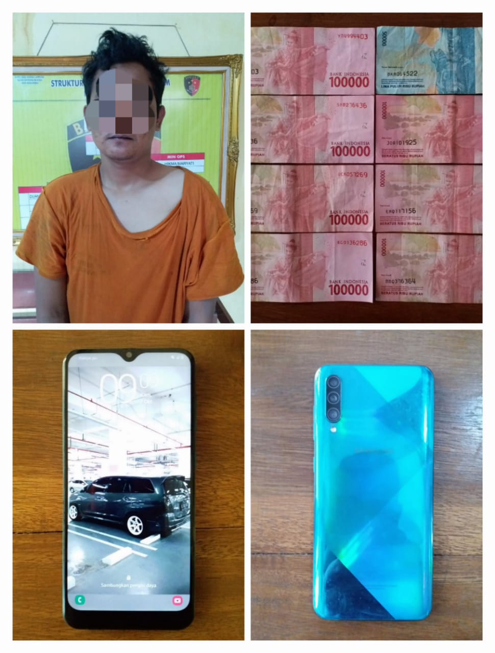 (satu) unit Handphone A50s warna biru, uang tunai sebesar Rp. 750.000,- (tujuh ratus lima ratus ribu rupiah) sudah diamankan di KSKP Bakauheni. (hms/asof)