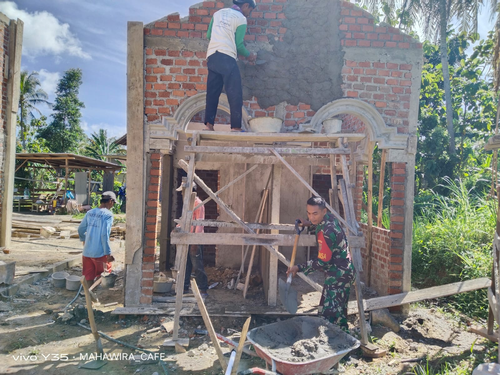 Jalin Kebersamaan Babinsa Kodim 0421/Ls Gotong Royong Bangun Masjid