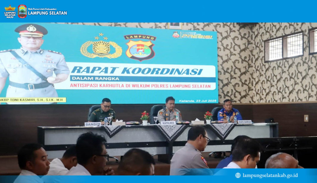 LAMSEL, Kalianda – Untuk mengantisipasi potensi bencana kebakaran hutan dan lahan (Karhutla) sejak dini, Polres Lampung Selatan menggelar Rapat Koordinasi (Rakor) lintas sektor di Aula Gedung Wicaksana Laghawa, Rabu (23/7/2025).