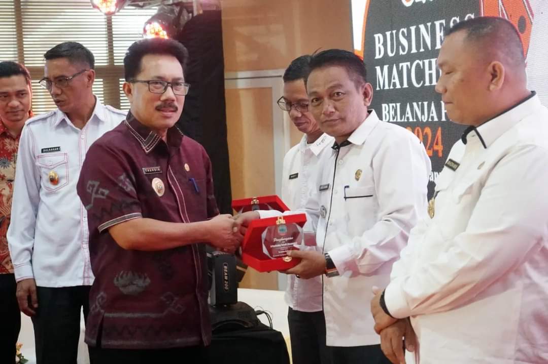 KALIANDA- Kecamatan Katibung, Lampung Selatan (Lamsel) mengukir prestasi dengan memboyong dua penghargaan sekaligus. Dua penghargaan yang di dapat Kecamatan itu, diperoleh dalam agenda tahunan bussines matching atau temu bisnnis belanja produk dalam negeri kabupaten Lampung Selatan (Lamsel) tahun 2024. Kegiatan Sekretariat Pemkab Lamsel pada Bagian belanja barang dan jasa itu, dibuka oleh Bupati Lamsel yang diwakilkan oleh Sekda Lamsel, berlangsung di Aula Rajabasa Pemkab setempat, Kamis (18-1-2024).