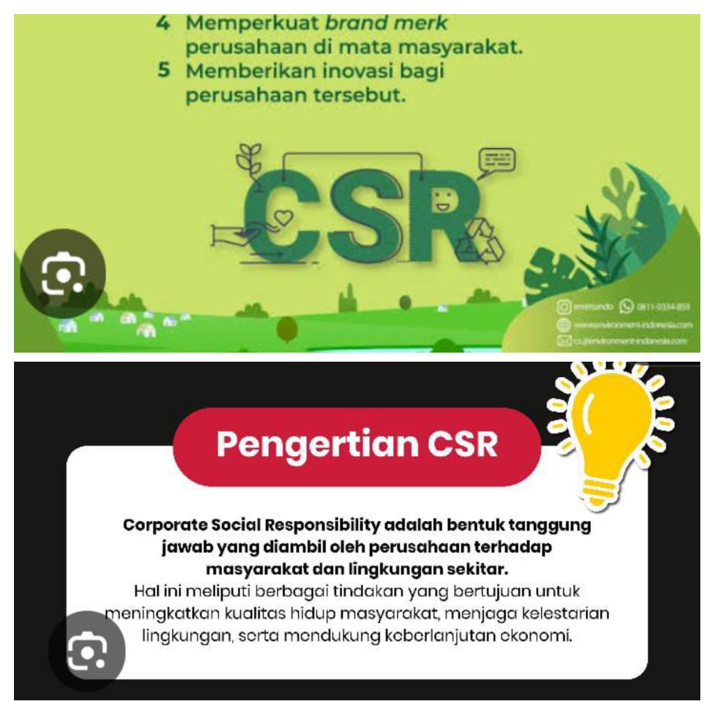 Untuk diketahui, CSR adalah corporate social Responsibility yang merupakan komitmen perusahaan untuk bertanggung jawab secara sosial dan lingkungan sekitarnya. Artinya, perusahaan tidak hanya mendapatkan keuntungan finansial saja tapi berkontribusi positif, berkelanjutan dalam meningkatkan kesejahteraan masyarakat sekitar dan kualitas hidup. Sedangkan tanggung jawab CSR terbagi 3 kepentingan, yakni tanggung jawab terhadap masyarakat, lingkungan, dan pemangku kepentingan. Dan, contoh penerapan CSR, adalah untuk pendidikan, kesehatan, lingkungan, dan ekonomi. (asof)