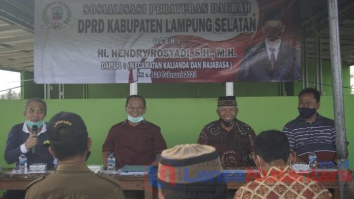 Kalianda–Ketua DPRD Kabupaten Lampung Selatan (Lamsel), H. Hendry Rosyadi, SH, MH, menggelar Sosialisasi Peraturan (Sosper) Daerah di Dapil 1 Kecamatan Kalianda dan Rajabasa.