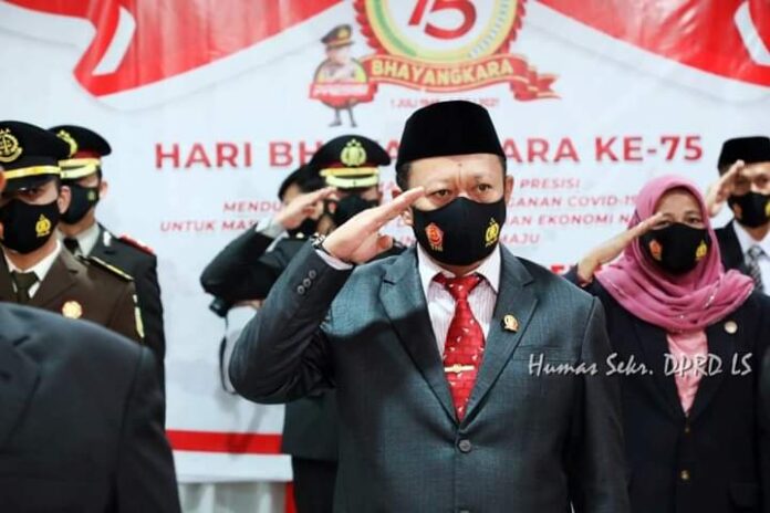 KALIANDA–Ketua DPRD Lampung Selatan pagi tadi menghadiri kegiatan Pelaksanaan hari Bhayangkara ke 75 yang diselenggarakan oleh Polres Lampung Selatan bertempat diruang Vicon dan Data Mapolres Lamsel dan dilaksanakan secara terbatas yang hanya dihadiri oleh Bupati dan Forkopimda Lampung Selatan. (01/07/2021).