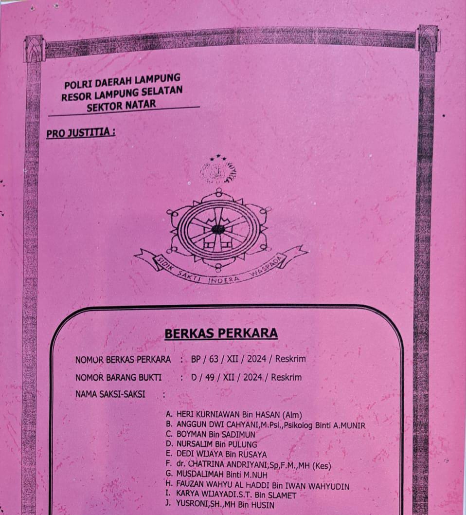 Keterangan ini dikuatkan dengan adanya berita acara sumpah tanggal 23 Desember 2024 dihadapan penyidik Ipda. Adek Suci Pebrianto, S.H., serta saksi Brigpol. Augia Mantafani, S.H., dan Brigpol. Deni Hermawan, S.H.
