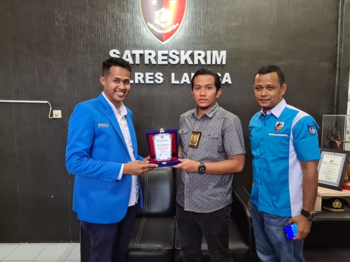 Langsa – Dewan Pimpinan Daerah ( DPD) KNPI Kota Langsa menyerahkan Plakat dan Sertifikat kepada Kasatres Polres Langsa.