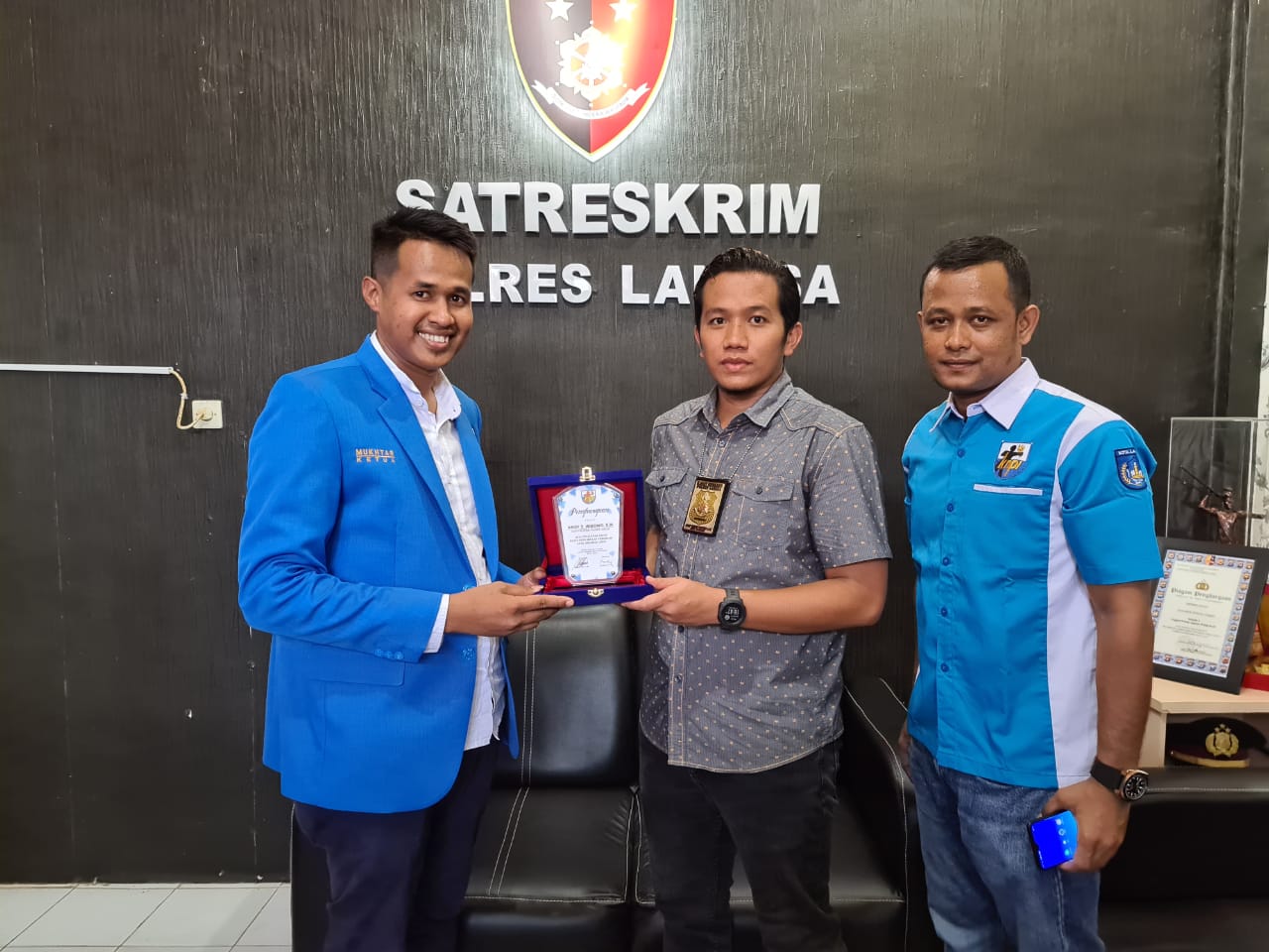 KNPI SERAHKAN PLAKAT DAN SERTIFIKAT KE KASATRES POLRES LANGSA