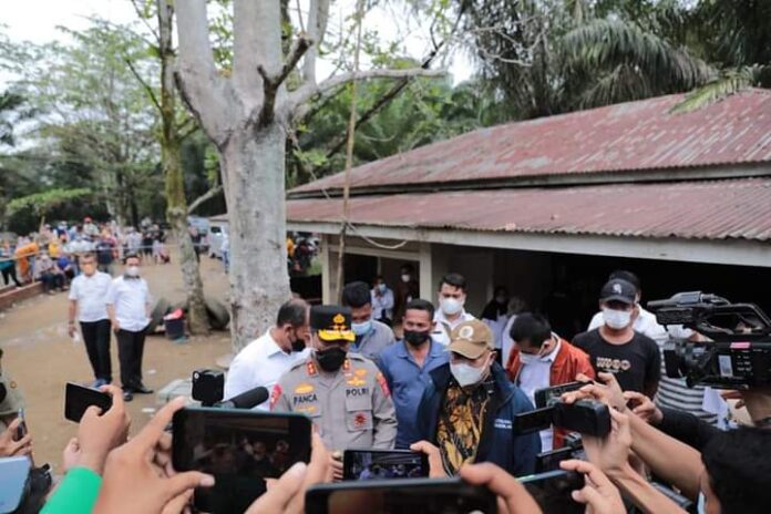 Sumut Langkat – Komisioner Komnas HAM, Choirul Anam, memberikan apresiasi kepada Kapolda Sumut Irjen Pol Panca Putra Simanjuntak saat meninjau kerangkeng milik Bupati Langkat Terbit Rencana Perangin-angin di Dusun Nangka Lima, Desa Raja Tengah, Kecamatan Kuala, Rabu (26/1).