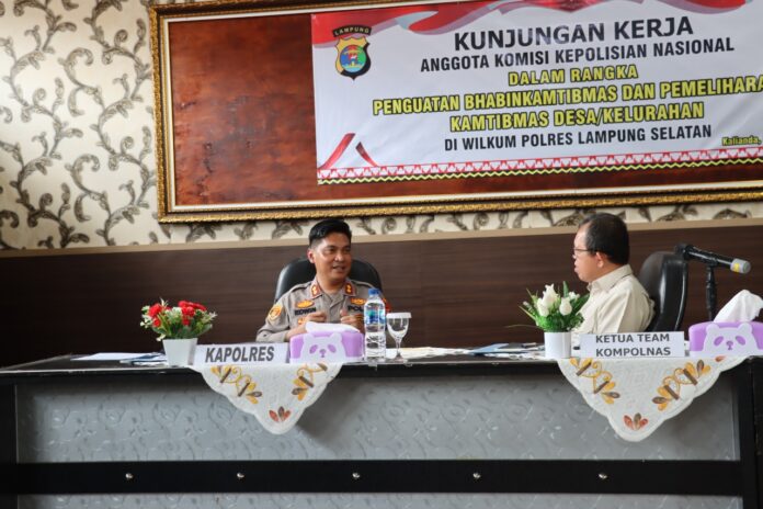 Kunjungan kerja Komisi Kepolisian Nasional Indonesia (Kompolnas) ini dilakukan berkenaan dalam rangka penguatan Bhabinkamtibmas dan pemeliharaan kamtibmas tingkat desa/kelurahan khususnya melingkupi di Wilayah hukum Polres Lampung Selatan.