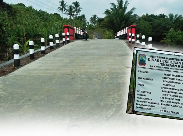 “Paket pembangunan jembatan Way Legundi, Desa Legundi, Kecamatan Ketapang itu, proyek tahun 2021 dan saat ini masih masuk masa pemeliharaan,” ujarnya. Karenanya, lanjut Hasanuddin, pihaknya akan membuat surat agar pihak penyedia jasa CV Multi Talenta untuk membenahi semua pekerjaannya dan disesuaikan dengan RAB yang ada.