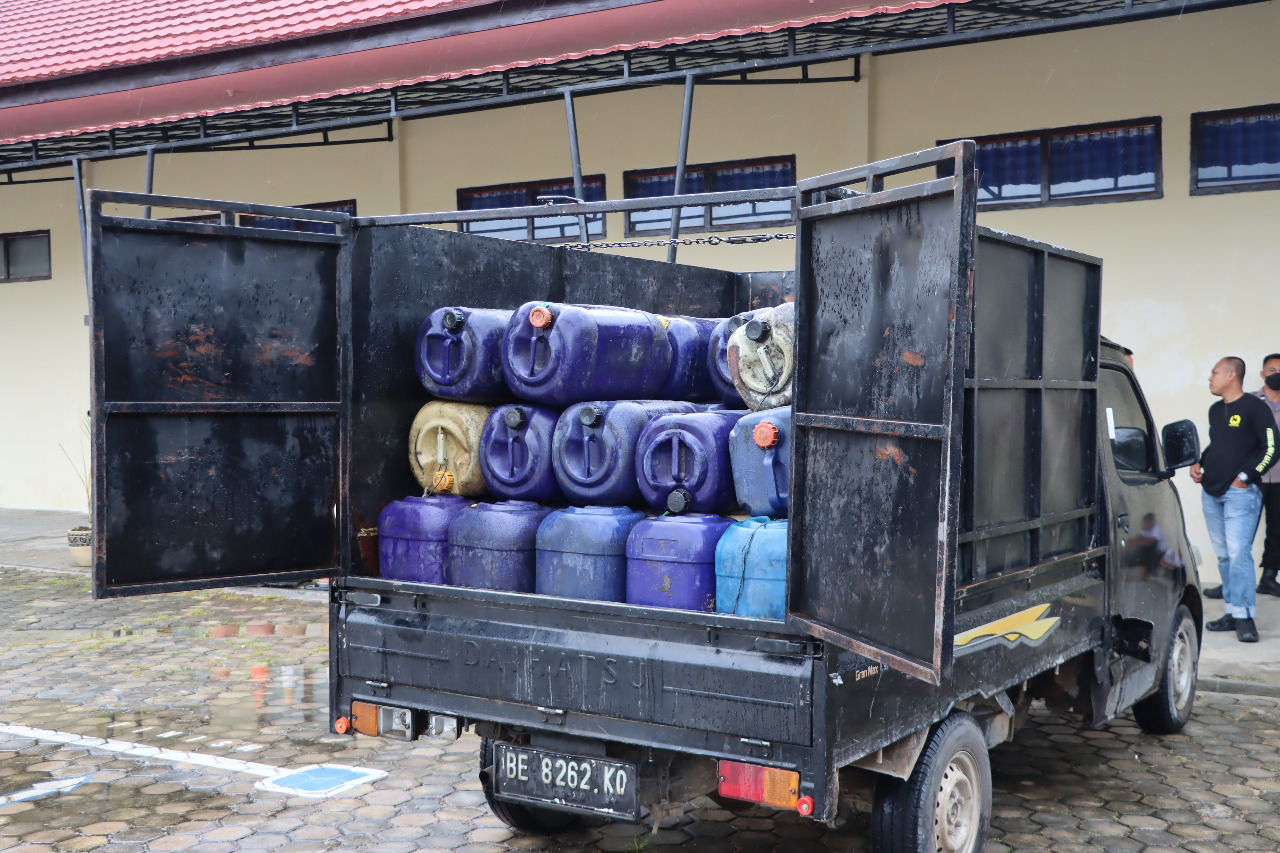 “Sdr. AS (25) diamankan saat tim kami buru sergap melaksanakan patroli dipimpin oleh Kasat Reskrim AKP Hendra Saputra, SE.,MM mendapati sebuah mobil grand Max Pickup warna hitam yang mencurigakan, lalu diberhentikan dan didalam bak mobil pickup grand Max berisi 22 jerigen yang berisi bahan bakar minyak jenis solar subsidi, selanjutnya diintrogasi dan masih ada jerigen berisi BBM solar yang disimpan dibelakang rumah warga sebanyak 15 jerigen solar” lanjutnya