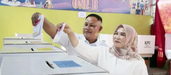 Tanjung Bintang – Bupati Lampung Selatan, H. Nanang Ermanto dan istri bersama-sama menunaikan hak pilihnya dalam Pemilihan Umum (Pemilu) Serentak 2024, Pilpres, DPD RI, DPR RI, serta DPRD Provinsi dan DPRD Kabupaten/Kota.