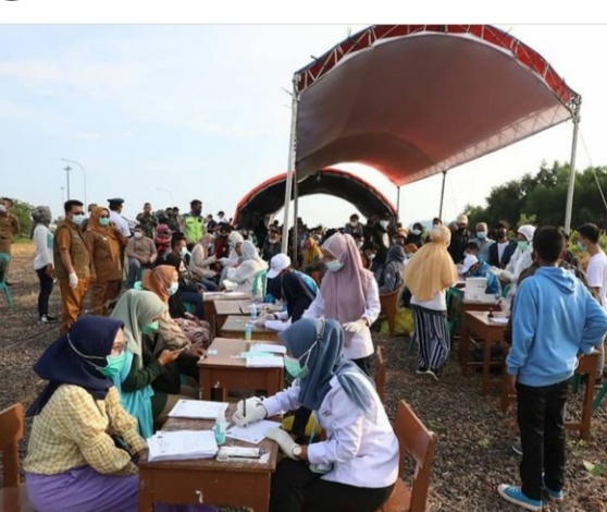 Lampung Selatan– Bupati Lampung Selatan H. Nanang Ermanto bersama sekretaris daerah dan Satuan Tugas (Satgas) COVID-19 Pemkab Lampung Selatan meninjau terjadinya lonjakan arus balik Idul Fitri 1442 H / 2021 M di tiga titik Chekck Point (Exit Tol Hatta, Bandar Bakauheni Jaya dan Post Kesehatan ASDP),selasa (18/5/2021)