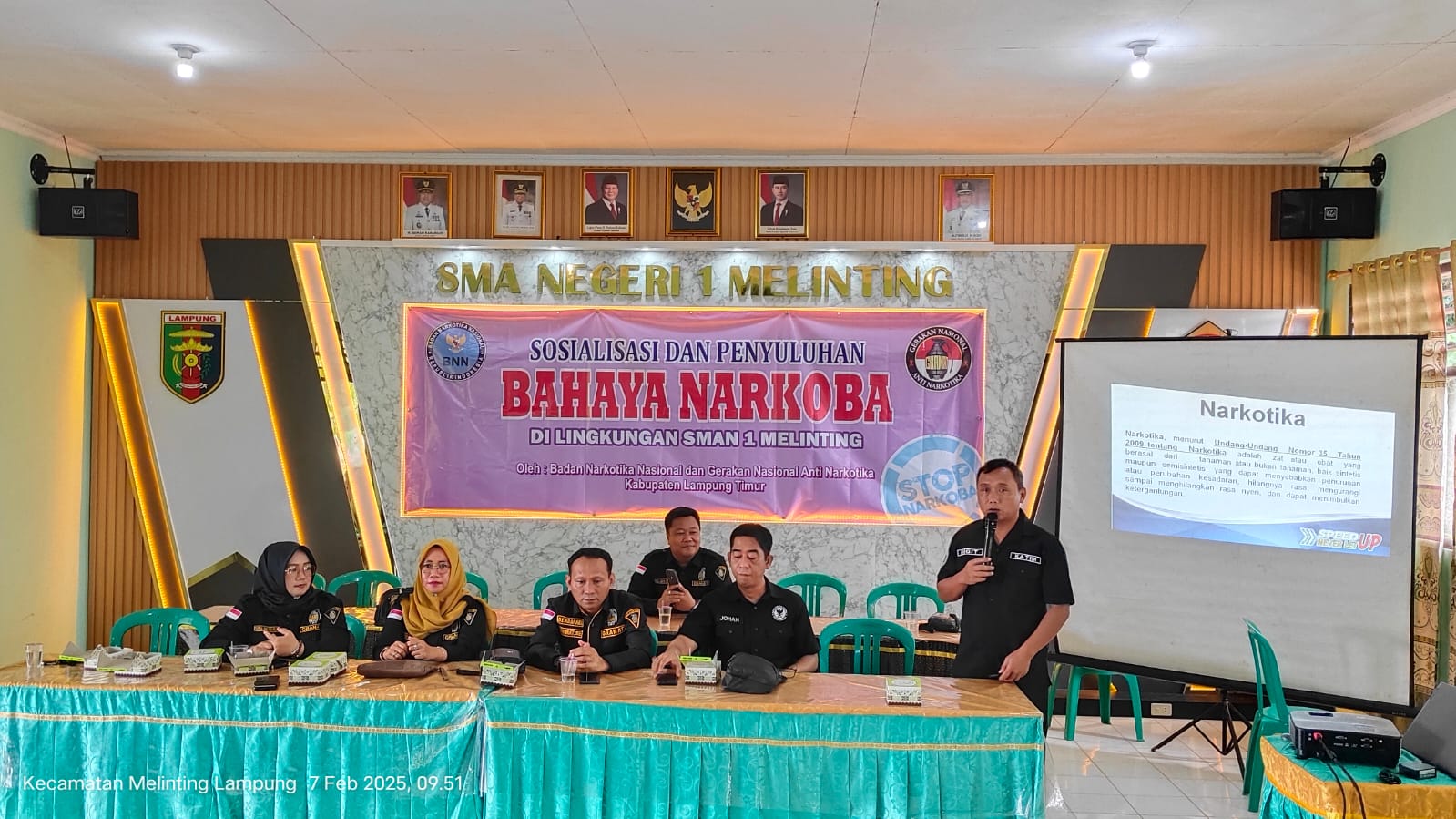 NewsLampung- Lampung Timur Kegiatan sosialisasi dan penyuluhan tentang bahaya narkoba tersebut, berlangsung di Aula SMAN 1 Melinting dan diikuti sekitar 500 peserta, Jum’at 7 Februari 2025.