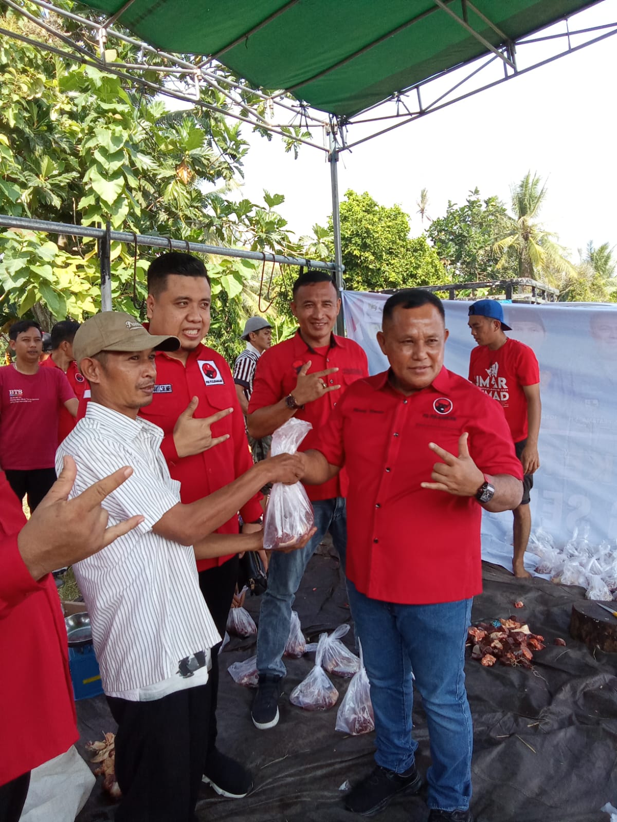 “Izin pak melaporkan pak Nanang Ermanto selaku ketua DPC PDIP Lampung Selatan, rangakaian kegiatan bulan bung Karno kali ini kami rangkaikan dengan peringatan Idul Adha, seperti pemotongan 2 ekor sapi, sunatan massal, santunan anak yatim dan orang tua jompo. Kami juga telah antar jemput kurang lebih 4.890 pasien, advokasi pembuatan BPJS sekitar 6.700 orang dan advokasi pendampingan hukum secara cuma-cuma ada 320 perkara. Kami terus bergerak, menangis dan tertawa bersama rakyat. Dan kepada seluruh relawan, simpatisan, kader dan pengurus partai, yang tidak kalah penting adalah untuk berdo’a. Bekerja dan berdoa untuk kemenangan bapak Nanang Ermanto, Lanjutkan,” ucap Merik Havit dalam sambutannya pada acara peringatan bulan Bung Karno sekaligus perayaan Idul Adha di kantor BBHAR, Senin 18 Juni 2018.