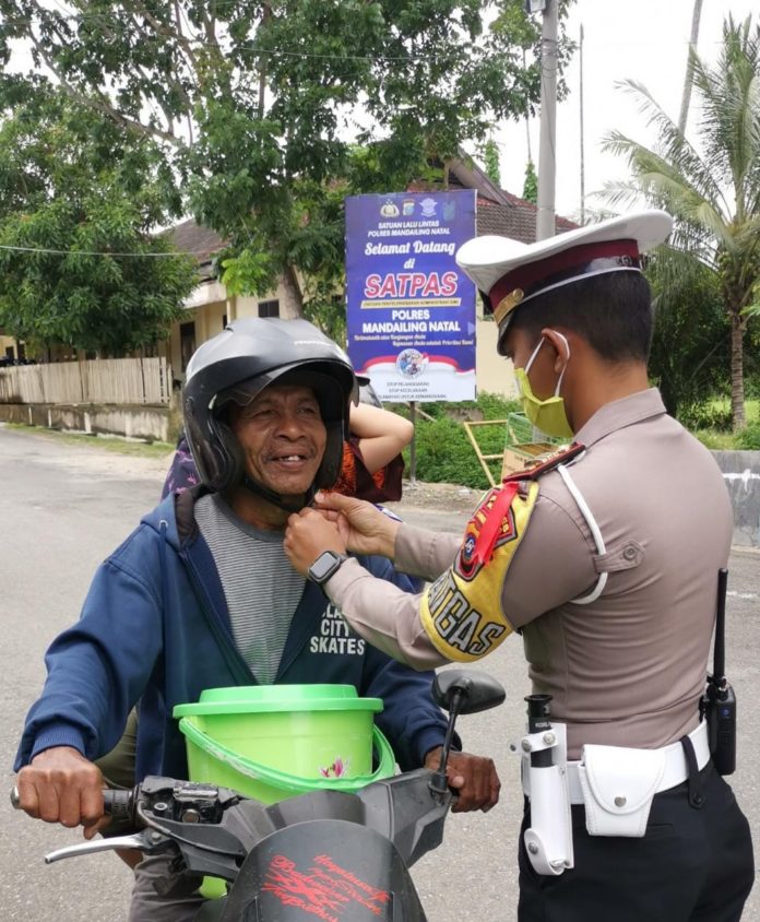 “Hal tersebut saya lakukan, agar pengemudi sepeda motor tersebut tidak menyalahi aturan lalu lintas yang berlaku juga bila mana terjadi kecelakaan bagian kepala pengemudi dapat aman dari benturan” pungkas Kasat Lantas Polres Madina Akp Septian Dwi Rianto, S.H, S I.K.