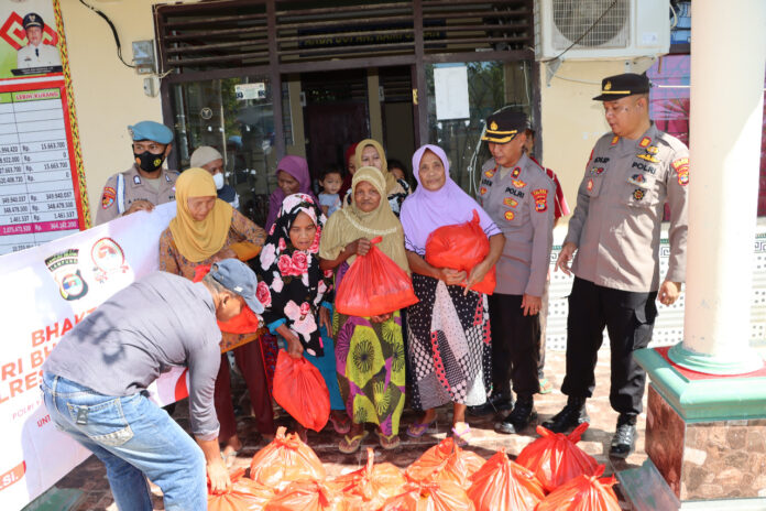 LAMSEL–Menyambut Hari Bhayangkara ke 76 Korp Polisi Polres Lampung Selatan Polda Lampung menggelar Bakti sosial membagikan sembako terhadap masyarakat yang membutuhkan.