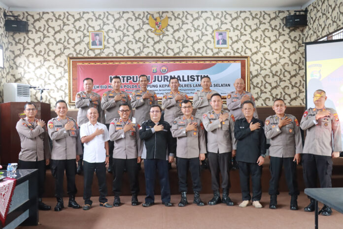 “kami hadirkan personal dari Polres, Kapolsek dan Bhabinkamtibmas diharapkan dapat menunjang meningkatkan kemampuan personil kami khususnya dibidang jurnalistik, dimana kami menyadari keterbatasan kemampuan kami” ujar Kompol Sukamso saat menyambut tim dari Bid Humas Polda Lampung.
