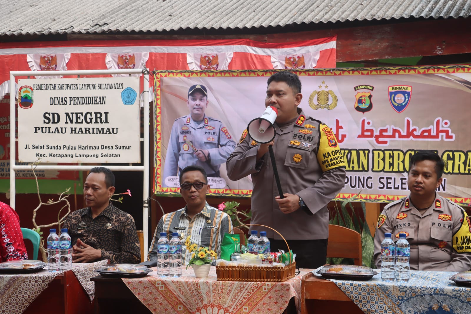 Acara tersebut dipimpin oleh Kapolres Lampung Selatan, AKBP Yusriandi Yusrin, didampingi sejumlah pejabat, termasuk Kadis Pendidikan Lampung Selatan, Bapak Asep Jamhur, Kasat Binmas AKP Hj. Yani Devi Yanti, dan Kapolsek Penengahan IPTU Dixko Romadi Alfansyah Subing. Turut hadir kepala sekolah Sukirdi, beserta 10 guru, serta aparat Desa Sumur dan media.