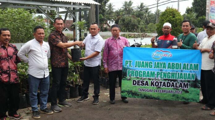 Sidomulyo, 24 Februari 2023, PT. Juang Jaya Abdi Alam yang diwakilkan oleh manager GA bapak Thamaroni usman melaksanakan salah satu program CSR perusahaan yaitu program penghijauan didesa Kotadalam dan Desa Sukabanjar Kecamatanb Sidomulyo, dalam menyukseskan program tersebut perusahaan berkolaborasi dengan aparat desa yang diterima langsung oleh kepala desa Kotadalam & Sukabanjar, dan saksikan dan hadiri oleh sekertariat desa, kepala dusun dan beberapa warga yang ada di desa Kotadalam dan Sukabanjar.