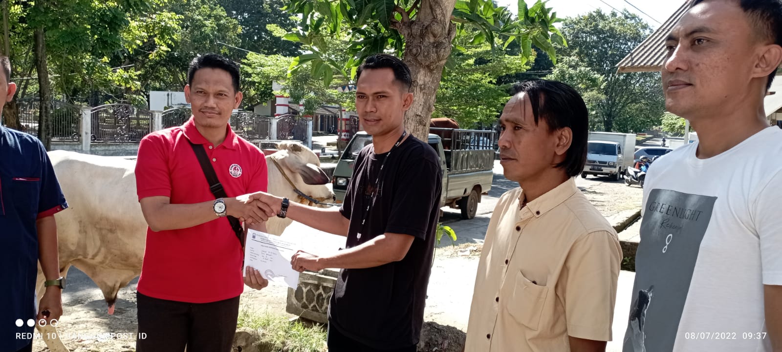 Sebagai formalitas penyerahan hewan kurban, yaitu dilakukan oleh Kepala Sub Bagian (Kasubag) Kesejahteraan Soasial Bagian Binamental Spiritual, Dhanil Irawan, kepada wartawan di Sekretariat KJHLS yang berada di Jalan Kolonel Makmun Rasyid, Kelurahan Way Urang, Kecamatan Kalianda, Jum’at (8/7/2022).