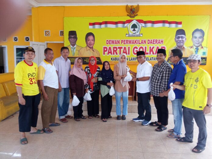KALIANDA- Seperti tahun sebelumnya, DPD Partai Golkar Lampung Selatan melakukan penyebelihan hewan kurban. Dihadiri ketua dan pengurus Golkar Lamsel, penyembelihan hewan kurban berlangsung di kantor setempat, Rabu (19-6-2024).