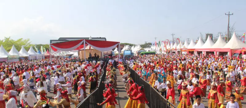 Ribuan Siswa SD, SMP Ikut Meriahkan HUT ke-67 Lampung Selatan Dengan Tari Bedana Massal