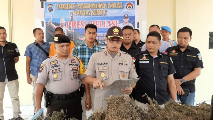Kapolres Mandailing Natal, AKBP Horas Tua Silalahi, S.IK. M.Si kepada menyampaikan dalam Pers Rilis, Rabu (18/03/2020),  “Penemuan ladang ganja ini merupakan hasil pengembangan dari tindak pidana narkotika golongan I jenis ganja dengan nomor : LP/21/III/RES.4.2/2020/SU/RES MDN pada hari Sabtu (07/03/2020) dengan penangkapan 3 (tiga) tersangka atas nama IS alias Anuel, SR alias Sahdin dan JR alias Joni.