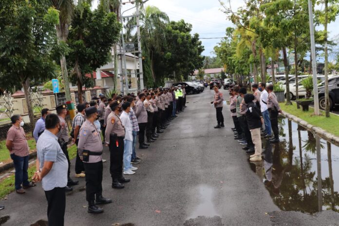 Polres Lampung Selatan menerjunkan sebanyak 100 personil dalam pengamanan kegiatan pelantikan Kepala Desa yang dilaksanakan, Selasa (9/11/2021) di Aula Sebuku Komplek perumahan Bupati Lampung Selatan.