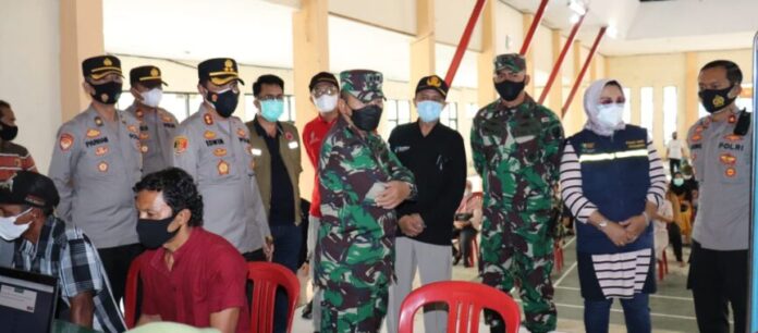 Di Kabupaten Lampung Selatan, program vaksinasi TNI-Polri bekerja sama dengan Pemerintah Kabupaten (Pemkab) Lampung Selatan, dilaksanakan di Gedung Serba Guna (GSG) Kecamatan Penengahan, Sabtu (26/6/2021).