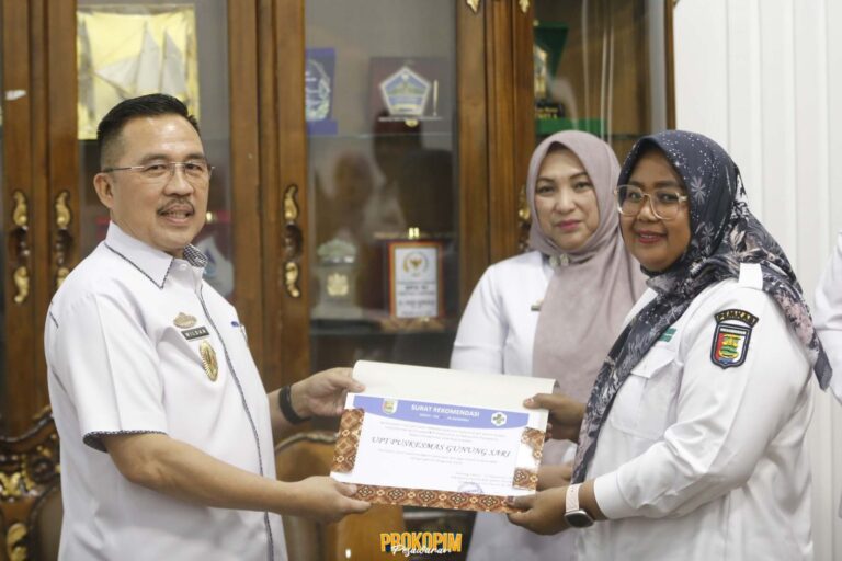 PESAWARAN – Sekretaris Daerah (Sekda) Kabupaten Pesawaran Wildan menyerahkan surat rekomendasi Badan Layanan Umum Daerah (BLUD) kepada 2 Puskesmas yang ada di Kabupaten Pesawaran.