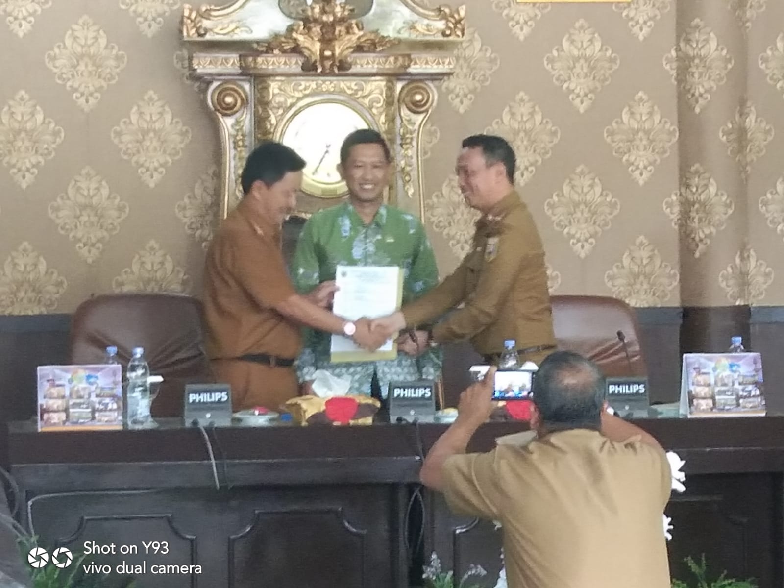 Acara selanjut nya serah terima jabatan dan juga ,cindera mata kepada sekwan yang lama Yusron .(Tan )