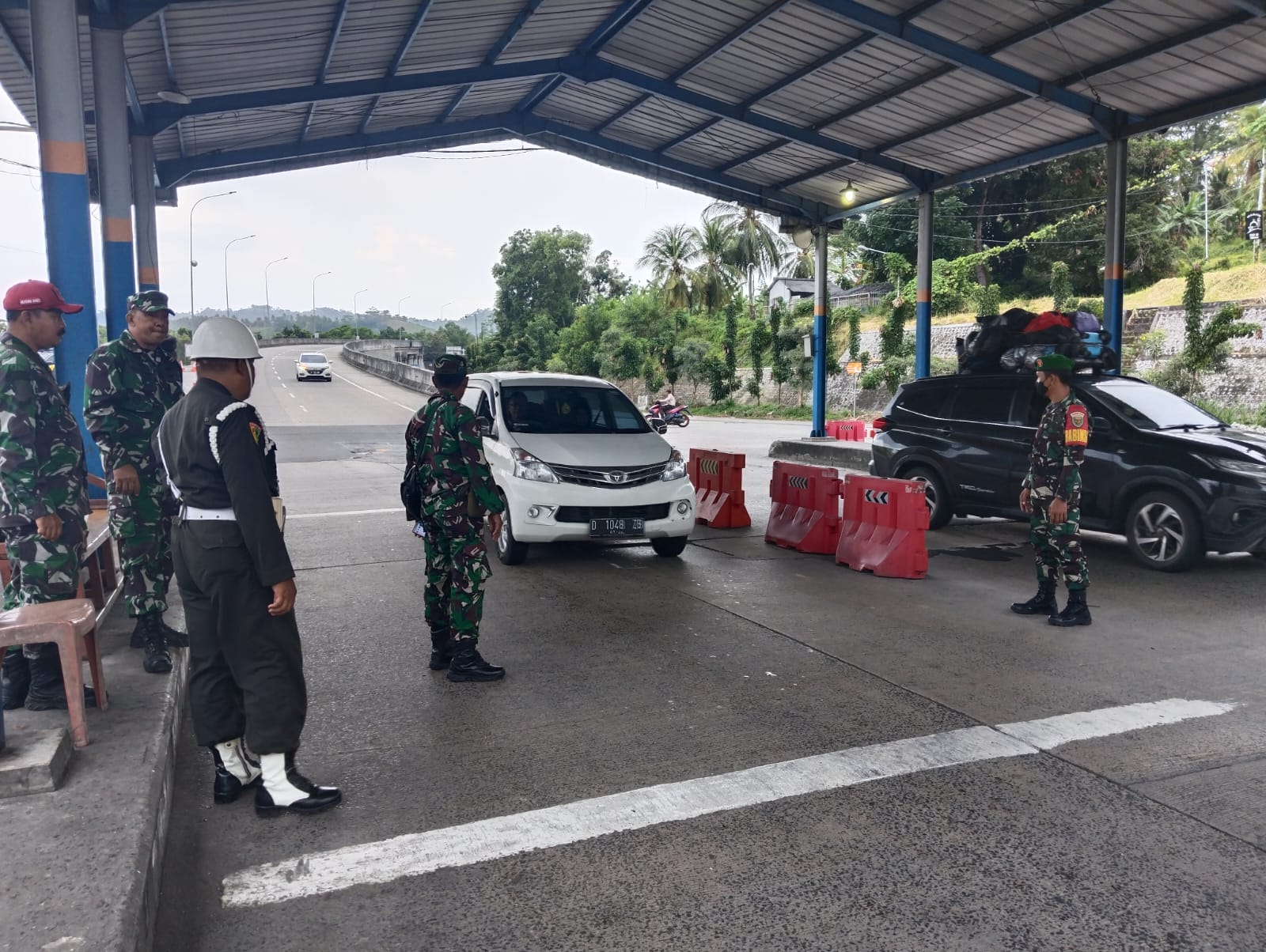 Sinergitas antara TNI dan Polri di Kabupaten Lampung Selatan berjalan dengan Kompak dalam memberikan rasa aman dan nyaman bagi masyarakat yang akan menyeberang di Pelabuhan Bakauheni setelah selesai melaksanakan mudik liburan Lebaran Idul Fitri 1444 H Tahun 2023 di Wilayah Koramil 421-03/Panengahan Kabupaten Lampung Selatan, Senin (01/05/2023).